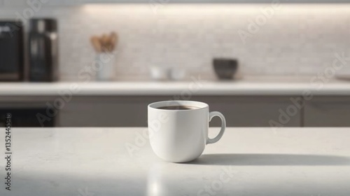 Morning Coffee: A White Mug on a Clean Kitchen Countertop