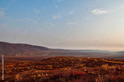 landscape, mountain, sky, nature, sunset, cloud, grass, cloud, mountain, desert, sun, blue, hill, autumn, travel, view, sunrise, hill, panorama, green, vale, meadow, summer, scenery, morning, alaska, colourful, colours, fall, red, orange, yellow, fog, foggy, autumn color