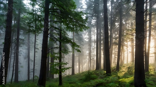 forest, tree, nature, tree, landscape, green, misty, wood, path, mist, light, pine, sun, autumn, wood, fog, foliage, leaf, park, summer, spring, timberland, leaf, foggy, sunlight