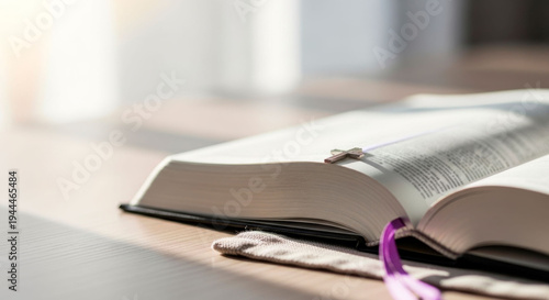 Morning sunlight illuminating Bible pages