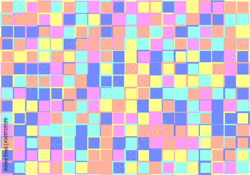 Mosaic from vector squares with trendy blue, yellow and pink colors and different sized borders in shades of colors for web, cover, wrapping paper, art, etc. backgrounds