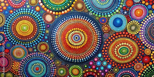 Mosaic of Vibrant Dots Abstract Dot Painting in Colorful Circles, Dynamic Pattern for Contemporary Interior, Energetic Artwork with Intricate Detail and Bright Colors