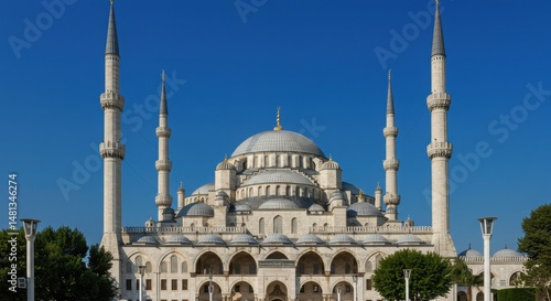mosque, building, architecture, islamic, dome, minaret, sky, blue, exterior, landmark, religious, arch, window, detail, sunlight, ornate, travel, culture, heritage, design, historical, tour tourism, traditional, historical building, structure, religion, worship, facades, art, geometric, pattern, tile, perspective, daylight, sunny, scene, sight, site, stone, old, town, islam, nobody, ancient, history, destination, holiday, sightseeing, traveling