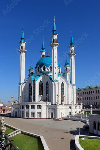 kazan, kremlin, wall, ancient, tower, mosque, sky, blue, minaret, russia, summer, day, religion, landmark