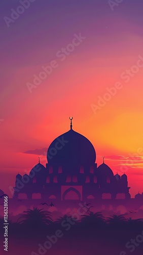 silhouette, dome, minaret, cloud, sky, peaceful, twilight, orange, islamic, faith, evening, spirituality, religion, dusk, mosque, sunset, serene, beautiful, worship, travel, minaret, culture, prayer, golden hour, celebration, arabian, card, tradition, background, design, muslim, crescent moon, lantern, banner, fasting, ramadan, greeting, eid, art, illustration, festival