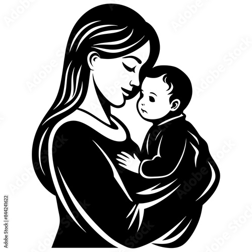 Mother and Baby Logo Design vector art silhouette on a white background