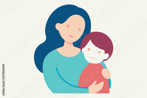 Mother and Child in Warm Embrace Illustration