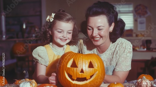 halloween, pumpkin, carving, mother, daughter, family, happy, smiling, autumn, fall, tradition, decoration, orange, home, togetherness, childhood, festive, celebration, october, holiday, seasonal, indoor, kitchen, bonding, love, eltern, children, girl, fun, excitement, preparing