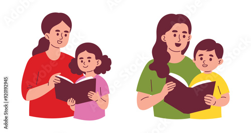 Mother and Her Daughter Reading Book