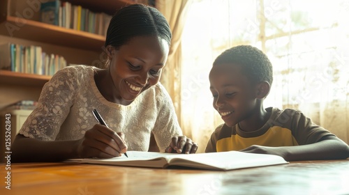 mother, children, learning, education, studying, writing, smile, happy, together, bonding, family, book, cognition, homework, desk, notebook, indoor, natural light, joy, support, interaction, connection, encouragement, creativity, teaching, laughter, sharpened, warmth, nurturing, environment, parenting, growth, skill, concentration, exploration, discovery, responsibility, love, togetherness, inspiration, achievement, understanding