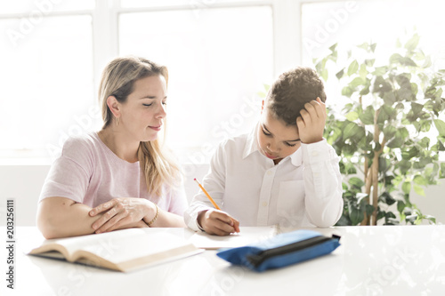 mother, help, teacher, boy, children, latin, american, hispanic, ethnicity, writing, education, smiling, student, desk, crayons, homework, 9, year, book, classroom, 1, people, studying, learning, portrait, beautiful, tied-up, casual clothes, cheerful, childhood, children, communication, concentration, elementary, age, school, happiness, horizontal, lifestyle, male, working, white, black, pen