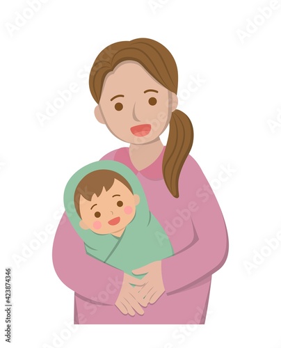 mother, baby, children, newborn, infant, childbirth, enclosed, blanket, hug, motherly love, love, nanny, affection, family, mother's day, happy, smile, happiness, comic, cartoon, vector, set, isolated