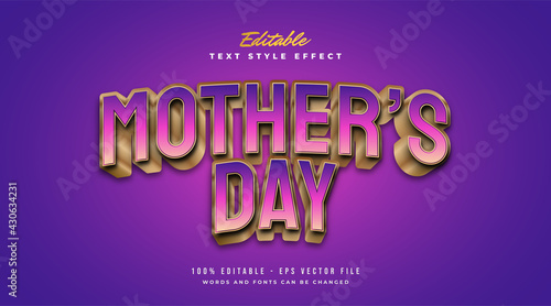 Mother's Day Text in Colorful Gradient with Embossed and Curved Effect. Editable Text Style Effect