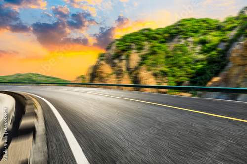 Motion blurred road and mountains at sunrise.mountain road background.