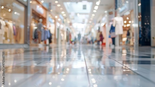 Motion blurred shoppers walking through a modern shopping mall with colorful bags, creating a dynamic and busy retail atmosphere, perfect for e-commerce, shopping-themed campaigns, and urban lifestyle