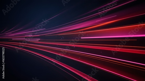 Motion Trails in Crimson: Dynamic streaks of vibrant crimson and magenta light race across a deep navy backdrop, evoking a sense of speed, energy, and futuristic movement.