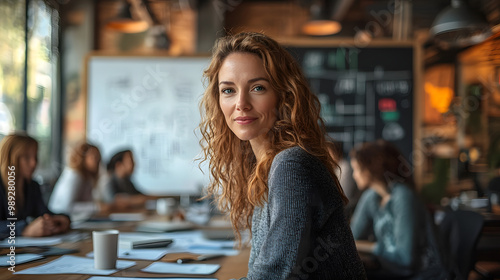 Motivated female entrepreneur presenting a thorough SEO marketing strategy to her team of executives, focusing on performance analysis and business improvement during an office strategy meeting