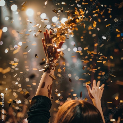 success, motivation, encouragement, power, support, attractive, powerful, hand raised, cheering, together, confetti, paper, inspiration, leadership, woman, beauty, fashion, hair, illustration