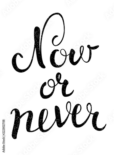 Motivational poster Now or never. Hand drawn design