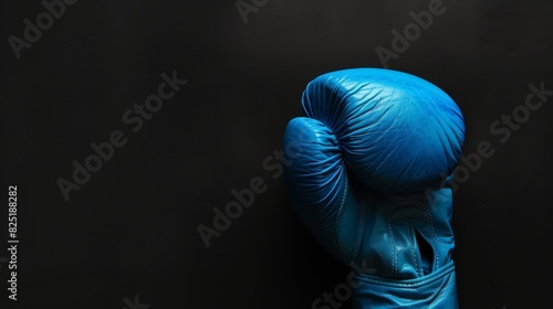 Motivational Sports Poster Featuring a Solitary Blue Boxing Glove on Black Background - Ideal for Inspirational Quotes and Advertising Design