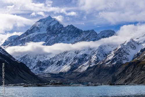 new zealand, alpine, mountain chain, nature, scenic, wilderness, landscape, national park, south island, canterbury, pristine, travel, destination, adventure, rugged, remote, winter, cold, snow, natural beauty, blue skies, cloud, geology, highland, wild, untouched, photo, exploration, mountain scenery, seasonal, peaceful, serene, environment, glacé, mountain summit, horizon
