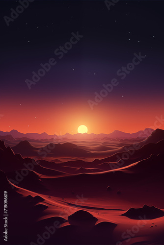Mountain and Desert Sunset with Vibrant Sky and Silhouetted Landscape in Warm Orange and Red Hues
