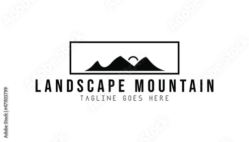 Mountain and sun logo inspiration. Black and white mountain vector logo template, Landscape modern logo illustration. Mountain vector element for backpacker.