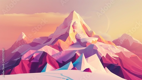 Mountain digital illustration flat design front view alpine adventure theme 3D render Tetradic color scheme