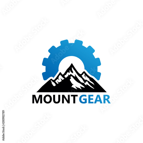 Mountain Gear Logo Template Design Vector, Emblem, Design Concept, Creative Symbol, Icon
