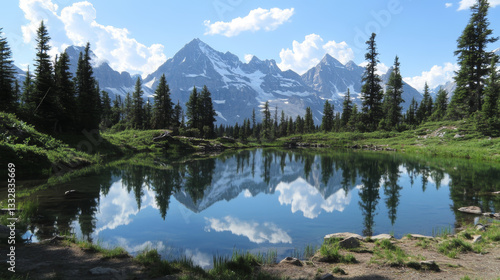 Mountain Lakes Mirror-Like Waters: Many mountain landscapes feature serene lakes that perfectly mirror the surrounding peaks and trees.