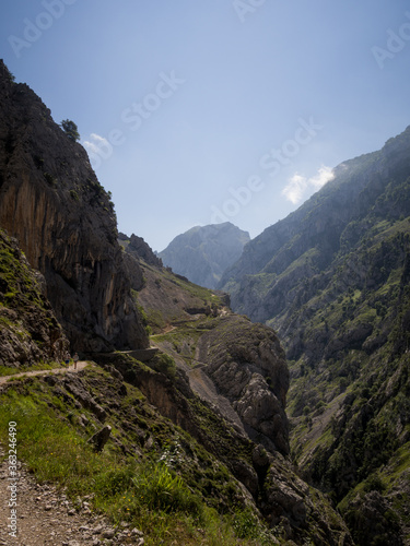 mountain, landscape, rocky, summer, trail, path, green, environment, blue, cloud, cliff, precipice, river, asturias, europa, peak