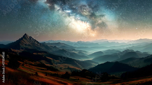 Mountain Landscape Under Milky Way: Natural Wonder with Starlight and Layered Mountains Intertwined