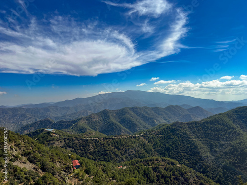Mountain panorama visible from the area of ​​Kykkos Monastery in Cyprus