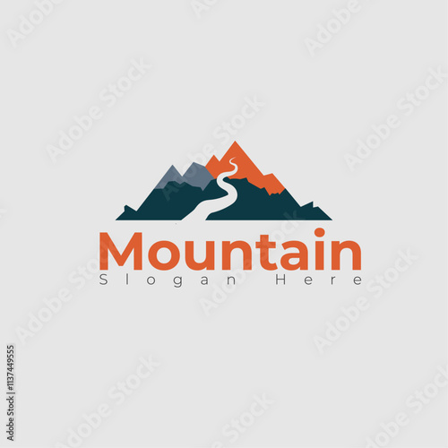 mountain peak logo design, Mountain hill business company outdoor vector illustration.