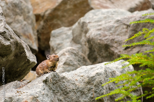 Mountain Pika foraging for food among rocks