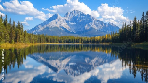mountain, lake, nature, landscape, forest, sky, cloud, water, scenic, tranquil, peaceful, pine tree, wilderness, travel, photo, beautiful, serene, untouched, natural, horizon, clear sky, daylight, picturesque, heaven, majestic, calm, mirror image, lush, greenery, ecology, vacation, destination, outdoors, adventure, pristine, exploration, environment, towering, grandeur, scene, fresh air, idylli, terrain, clean, climate