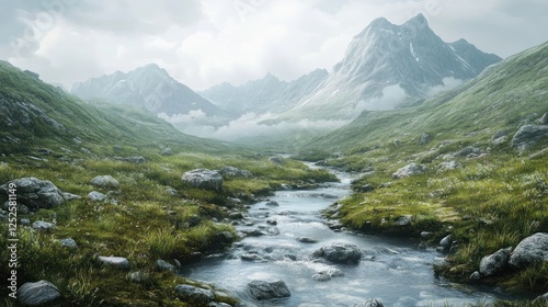 mountain, stream, vale, river, nature, landscape, scenic, rock, green, mist, peak, cloud, water, travel, scenery, wilderness, adventure, exploration, photo, calm, serene, peaceful, tranquil, beauty, majestic, awe, inspiring, stunning, breathtaking, picturesque, idylli, relaxing, escape, freedom, journey, discovery, horizon, sky, cloudscape, view, panorama, image