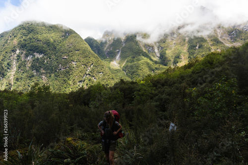 outdoors, hiking, woman, walk, huge, vale, tree, travel, strength, sky, rural, rainforest, nature, movement, mountain chain, mountain, mist, landscape, jungle, hike, forest, flora, exercise, daylight, clothing, backpack, alpine, caucasian, white, girl, female, person, people, adult, adult, 20s, young adult, young adult, young person, grown-up