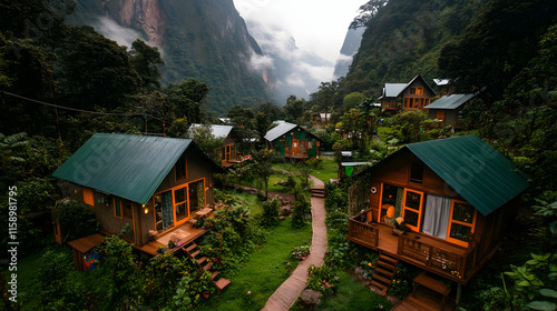 village, mountain, cabin, vale, green, lush, nature, house, home, wood, landscape, travel, tour tourism, scenic, view, adventure, vacation, holiday, journey, explore, destination, remote, tranquil, peaceful, serenity, escape, relaxation, shelter, habitat, dwelling, accommodation, lodging, building, architecture, forest, tree, plant, hill, fog, mist, cloud, sky, path, paseo, garden, flower, evening, light