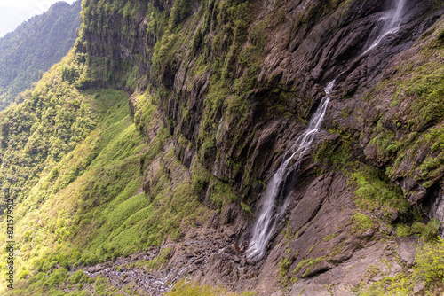 Mountain waterfall, Wawushan National Forest Park, Meishan city, Sichuan province, China