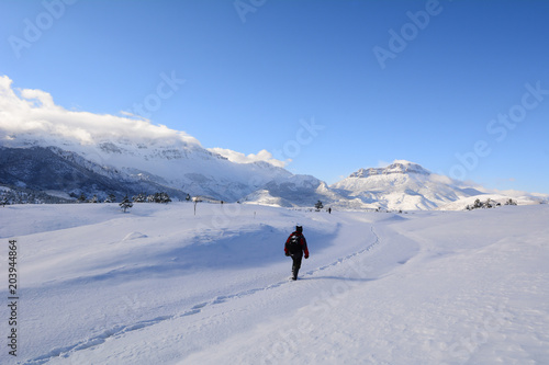 snow, winter, mountain, step by step, walk, activity, map, compass, geography, mountain, walking, team, sport, curiosity, season, sightseeing, pleasant, white, adventurous