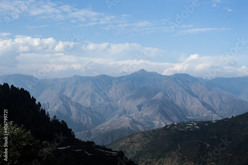 mountains and clouds 0f mussoorie. hill station in Uttarakhand, India.