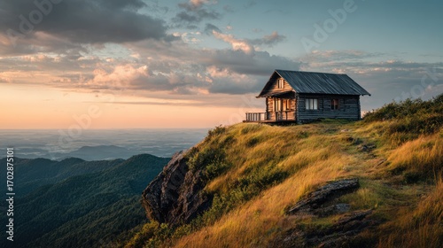 Mountaintop cabin sunset