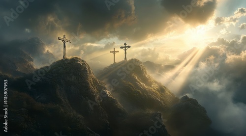 Mountaintop Crosses: A Dramatic, Golden-Hour Landscape