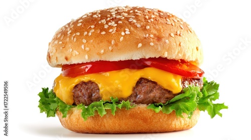 Mouthwatering Beef Cheese Burger with a Crispy Golden Outer Crust—Paired with Crispy, Salted French Fries, Every Bite Brings Rich Beef Flavor, Creamy Melted Cheese, and Crunchy Fries