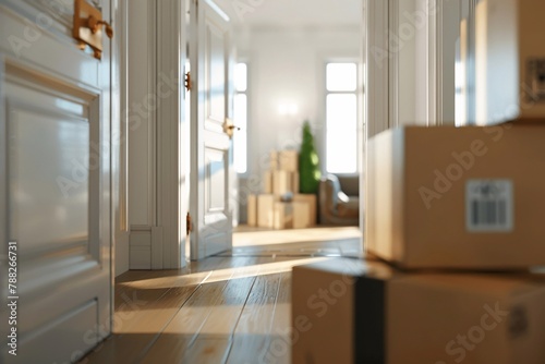 moving, house, three-dimensional, door, new, interior, room, cardboard, box, personal, belonging, furniture, apartment, condominium, transition, home, relocation, packing, unpack, residential, modern, design, architecture, lifestyle, real estate, urban living, decor, living space, urban housing