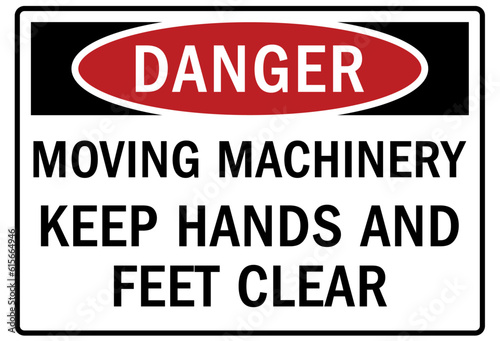 Moving machinery warning sign and labels keep hands and feet clear