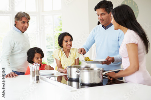 cooking, together, indoor, home, ingredient, grandparent, family, children, mother, father, meal, kitchen, cooker, receipe, horizontal, enjoyment, relaxed, relaxing, happy, smiling, saucepan, vegetable, chopping, cutting, pepper, helping, mother, father, eltern, grandmother, woman, indian, asian, people, person, 30s, 30s, woman, female, man, male, man, 40s, 40s, children, 50s, 50s, 70s