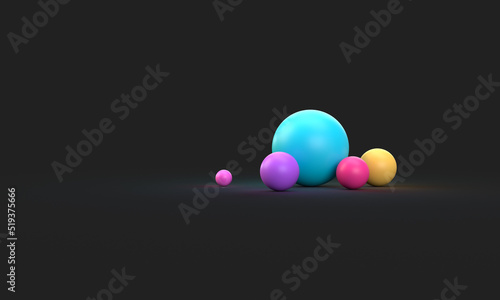 Multicolored balls on a black background. 3d rendering on the theme of abstract figures. Modern minimal style.
