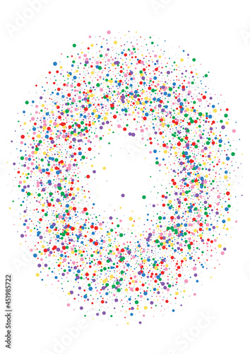 Multicolored Circle Isolated Background. Dot Rainbow Illustration. Red Top Round. Blue Colorful Confetti Texture.